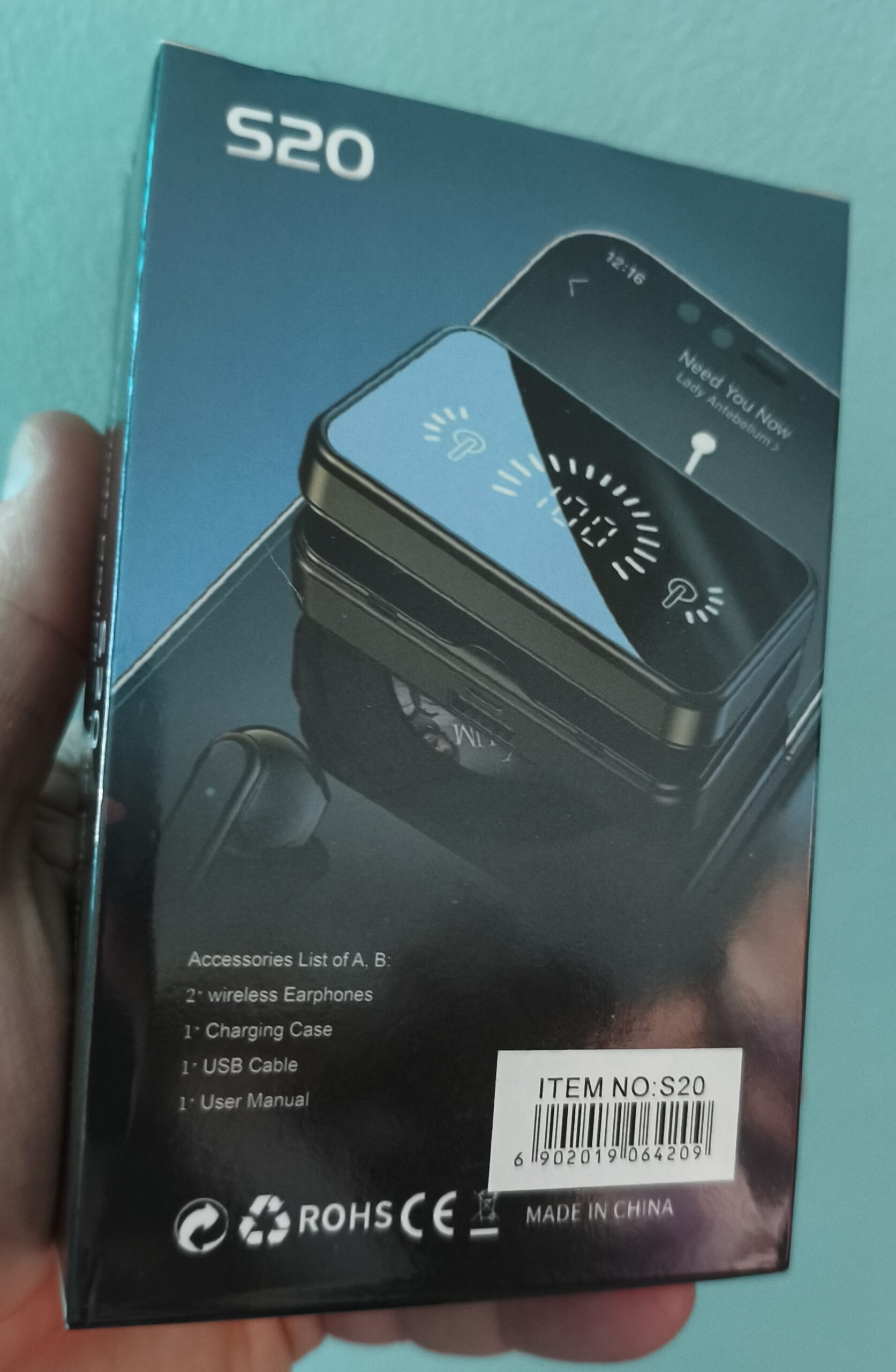Los auriculares inalámbricos S20 ofrecen sonido estéreo de alta calidad, conexión Bluetooth estable y un estuche inteligente con pantalla LED digital que muestra el nivel de batería de cada auricular y del estuche. Son livianos, cómodos y perfectos para música, llamadas y uso diario.