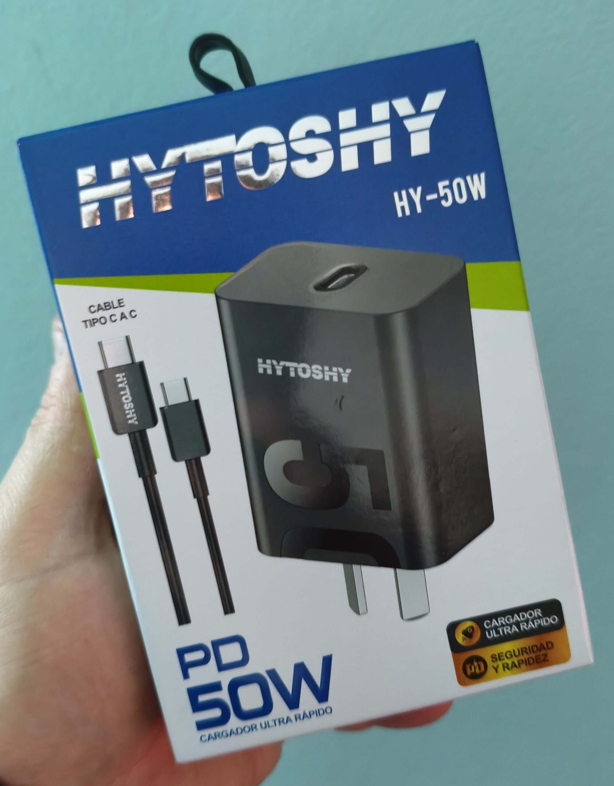 El HYTOSHY HY-50W es un cargador ultra rápido con tecnología Power Delivery (PD) de 50W, ideal para smartphones, tablets, notebooks y otros dispositivos compatibles con carga rápida. Incluye cable USB-C a USB-C, asegurando velocidad y seguridad en cada carga.