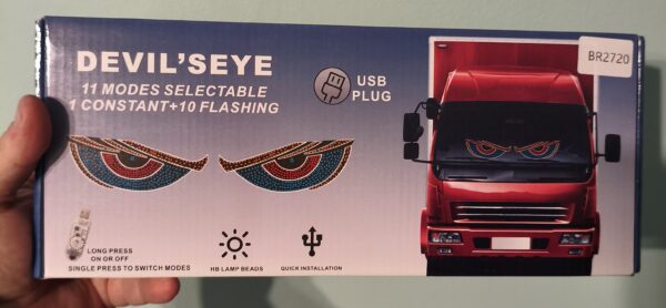 Con su diseño de ojos demoníacos iluminados y 11 modos seleccionables (1 constante + 10 destellos dinámicos), tu vehículo no pasará desapercibido.
