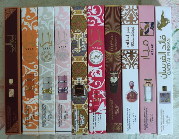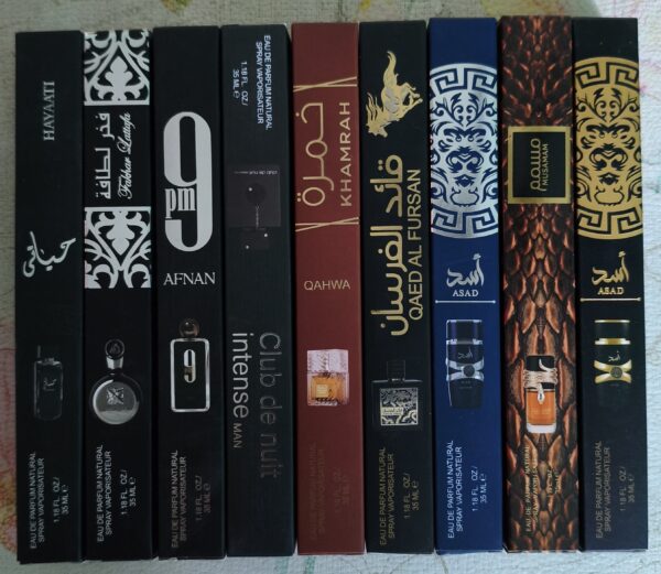 Descubre la elegancia y el misticismo de la perfumería árabe con nuestra colección exclusiva de Eau de Parfum Natural en práctica presentación de 35 ml (1.18 fl.oz). Ideales para llevar siempre contigo, estos aromas orientales combinan tradición y modernidad en cada frasco.